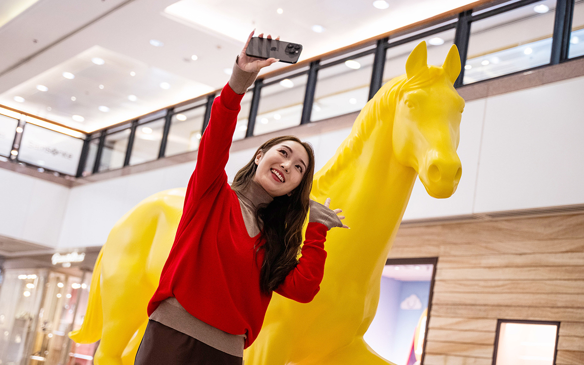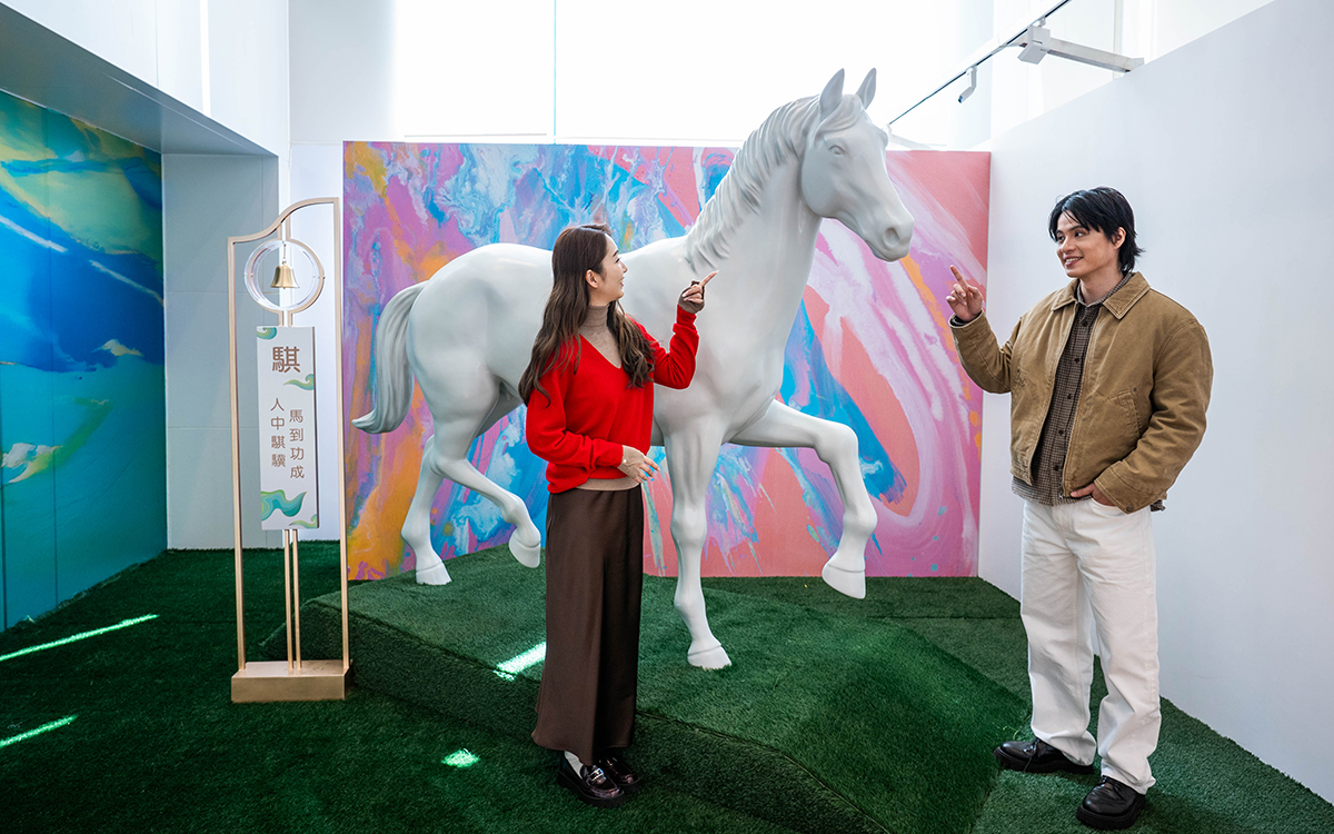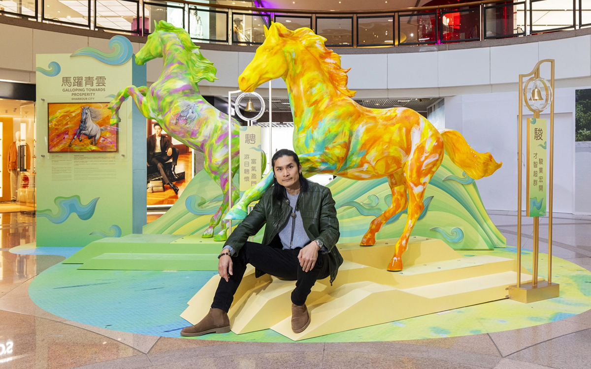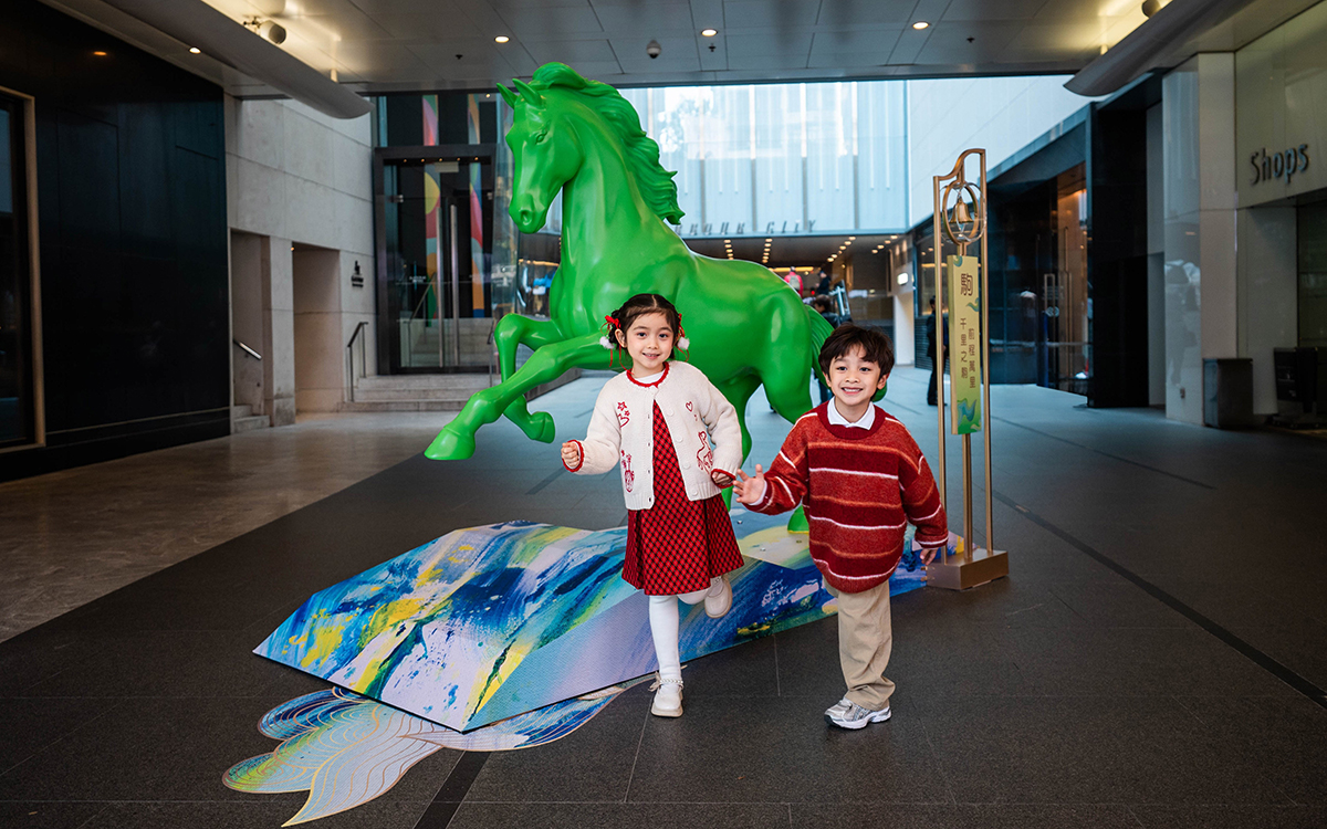 Kenneth has also created a new work exclusively for Harbour City titled “Lucky Wealthy”. Displayed at Atrium I, G/F of Gateway Arcade, the piece incorporates shimmering gold foil and traditional Chinese auspicious patterns to depict a radiant horse flowing with light, symbolizing prosperity and goodwill.