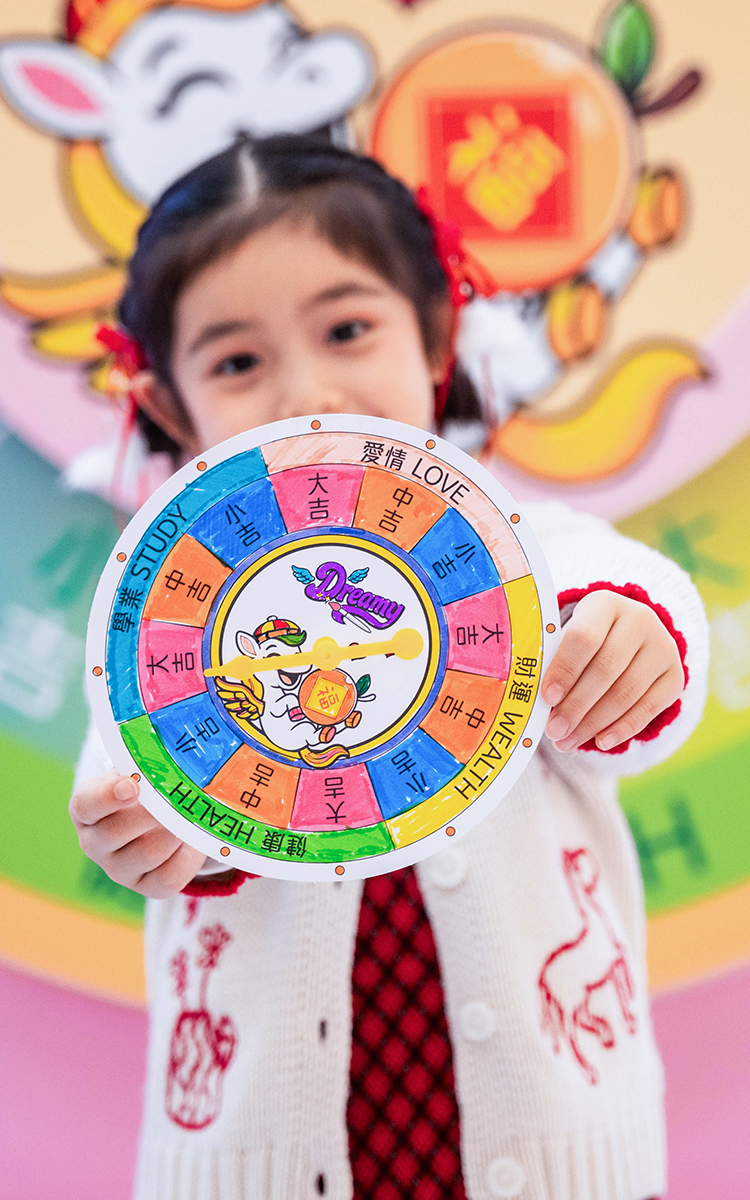 Kenneth introduces his newest original character “Dreamy” at the Chinese New Year Interactive Zone on the Ground Floor Atrium of Ocean Terminal. Children are encouraged to express their creativity — just as Dreamy’s name suggests. With a HK$20 donation, they can receive a “New Year Fortune Wheel Colouring Sheet” and write their wishes on a “Dreamy Wishing Plaque”, which can be hung on the peach blossom tree as a symbolic gesture of good fortune, positive outcomes, and fulfilled wishes in the year ahead.