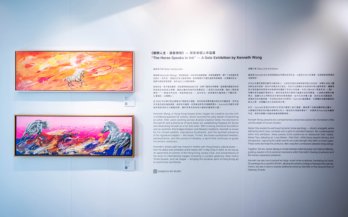 The exhibition features 18 horse‑themed paintings, including 7 new works, showcasing Kenneth’s unique aesthetic that blends Western painting techniques with Chinese symbolic elements. Seventeen pieces will be displayed at Gallery by the Harbour and presented in two complementary series, exploring the momentum of life and the depth of human emotion. Series One revisits his well-loved dynamic horse paintings, with vibrant, energetic works defined by bold colour contrasts and a spirit of unbridled freedom. Series Two, debuting as “Love Series – Part One”, shifts focus to intimacy and introspection, capturing the subtle warmth and quiet strength held within a horse’s gaze. The special artwork created exclusively for Harbour City titled “Lucky Wealthy” are displayed at Atrium I, G/F of Gateway Arcade.