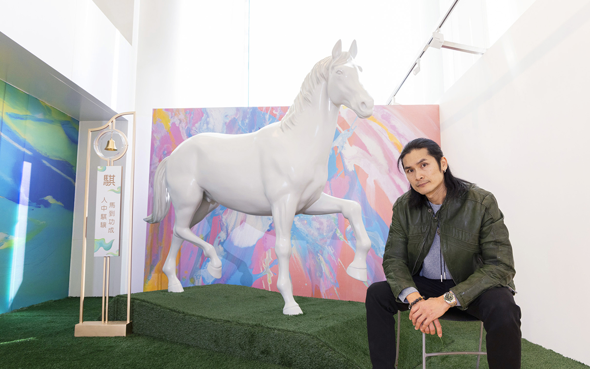 Complementing the exhibition, Kenneth has created a twelve‑horse sculpture series “Galloping Towards Prosperity”, which are displayed throughout Gateway Arcade, infusing the space with vibrant Chinese New Year ambience and artistic flair. Each sculpture stands between 1.8 and 2.4 metres tall, creating a striking presence throughout the mall. Kenneth has also hand painted two large horse sculptures, translating his iconic 2D paintings into powerful 3D forms, allowing the artwork’s energy to transcend the canvas. In collaboration with renowned Hong Kong feng shui master Dr. Lee Shing Chak, each horse has been thoughtfully assigned a unique colour: green for wealth, yellow for windfall luck, teal for relationships, grey for academic success and blue for travel and movement. Each sculpture is also named with a blessing that contains the character “馬” symbolising good wishes for every visitor. Shoppers can explore the sculptures throughout the mall and enjoy their vivid colours and symbolic meanings while celebrating the spirit of the Year of the Horse.