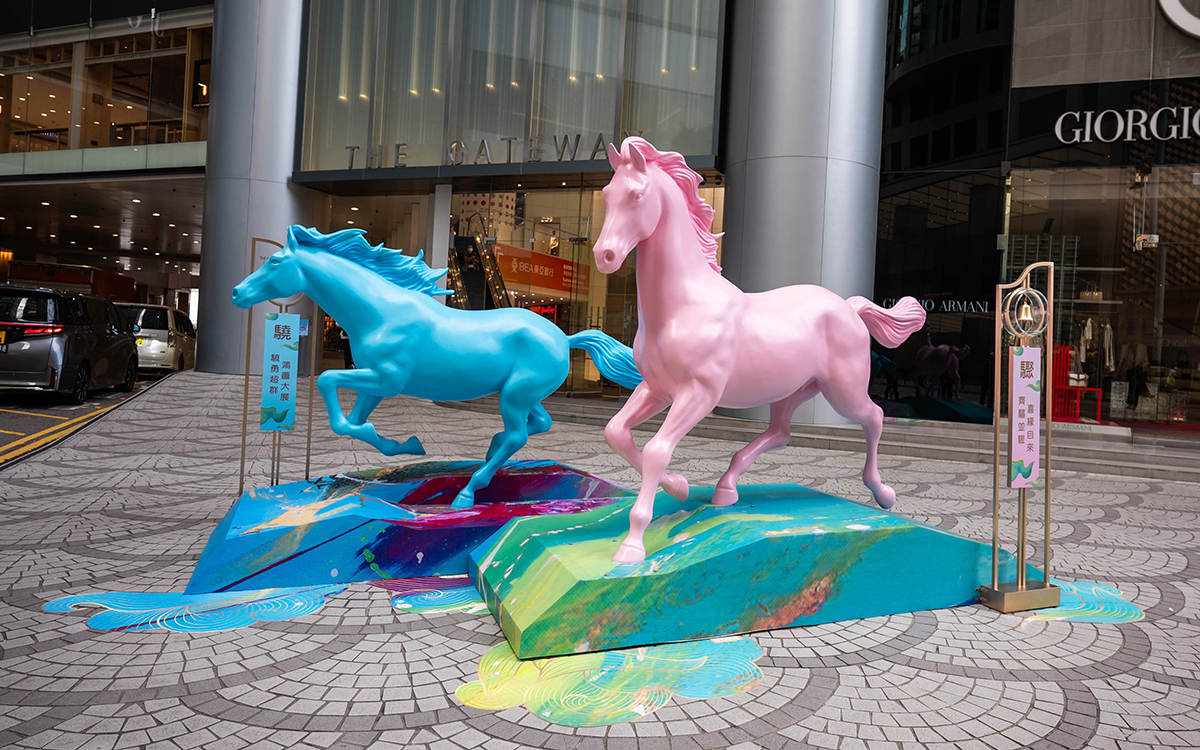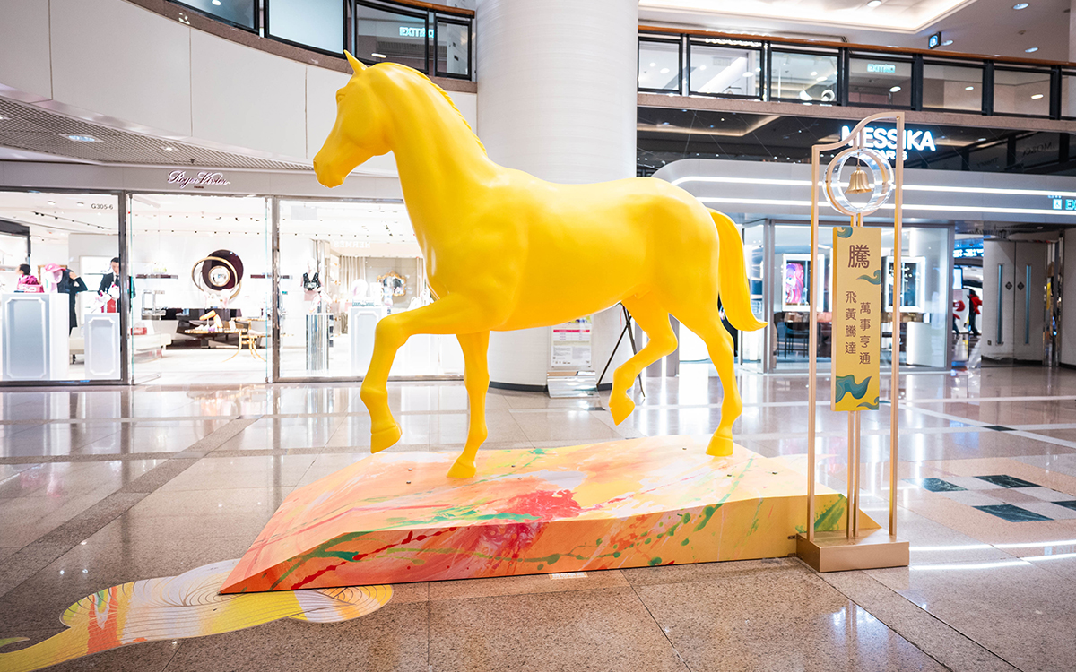 Kenneth has also created a new work exclusively for Harbour City titled “Lucky Wealthy”. Displayed at Atrium I, G/F of Gateway Arcade, the piece incorporates shimmering gold foil and traditional Chinese auspicious patterns to depict a radiant horse flowing with light, symbolizing prosperity and goodwill.