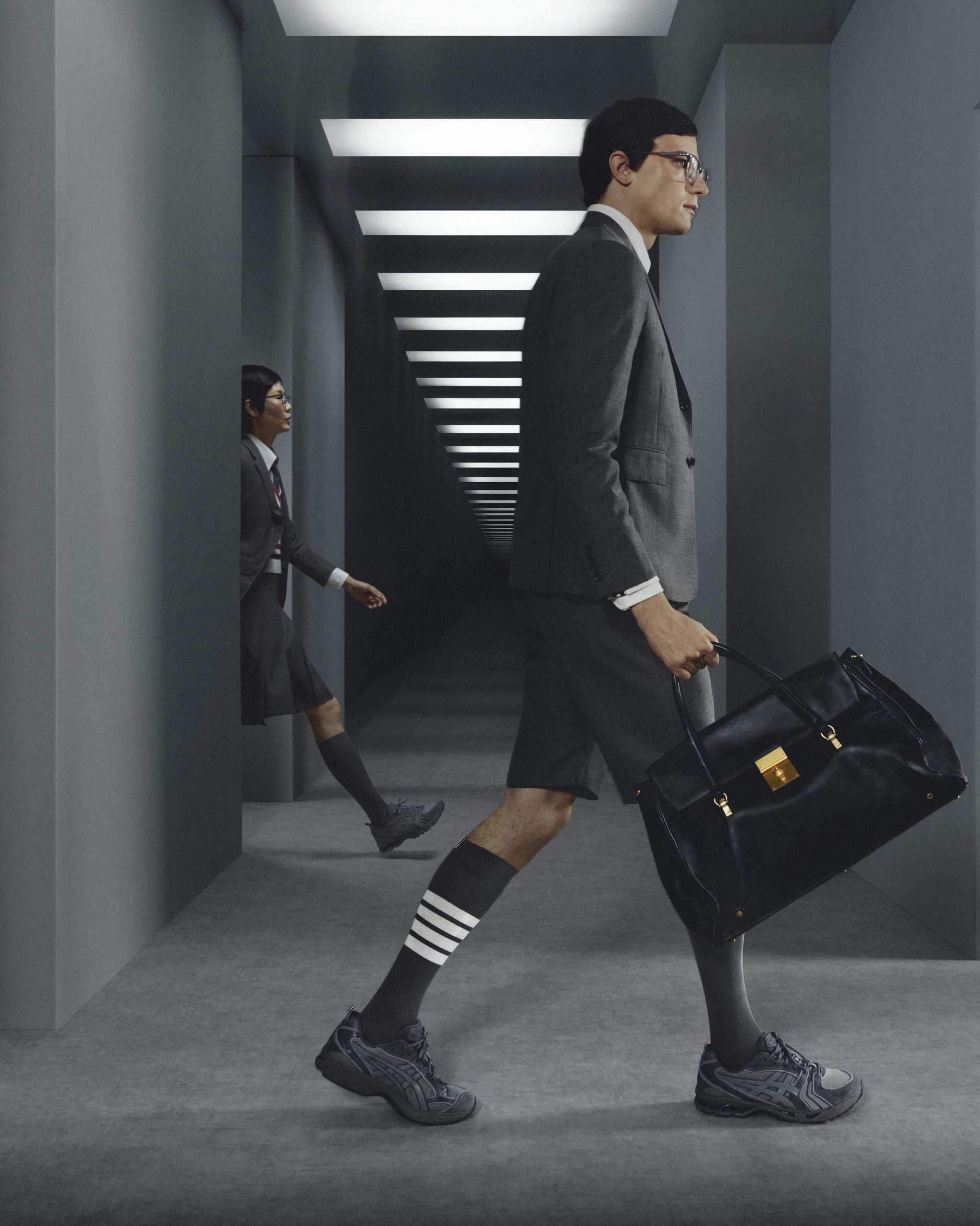 Thom Browne for ASICS Sportstyle reinterprets the iconic GEL-KAYANO™ 14 shoe with luxury materials and considered finishes. An exclusive meeting of technical innovation and design, the collaboration merges performance technology with Thom Browne’s tailored language. An ASICS classic, reimagined by Thom Browne—steady as the clock, precise as an expert hand.