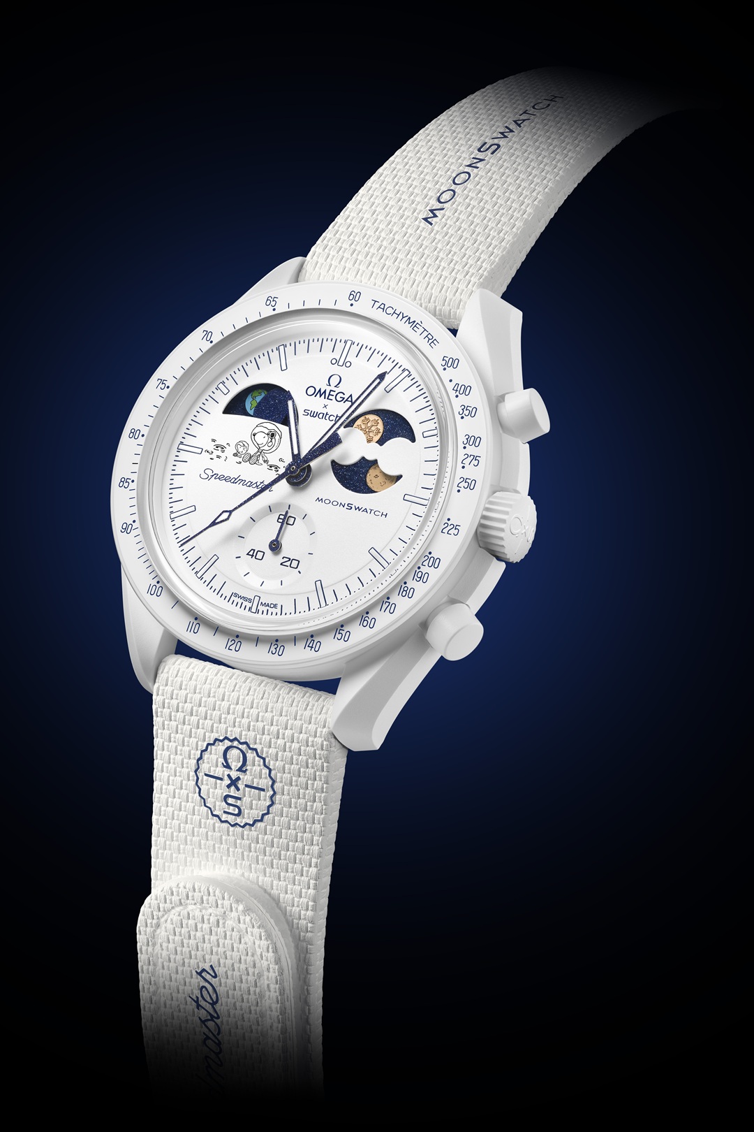 The latest MISSION TO EARTHPHASE – MOONSHINE GOLD Cold Moon watch draws inspiration from snow-covered landscapes of the winter season, showcasing a pristine white dial design. This timepiece incorporates Swatch’s earth phase innovation, and a moon phase indicator adorned with OMEGA’s Moonshine™ Gold, paired with signature illustrations from the world of Snoopy, adding a touch of fashionable allure to the timepiece. Furthermore, the watch’s moon phase indicator is uniquely laser-etched with intricate snowflakes, making each watch truly one-of-a-kind and a true collector’s item. This watch is only available when snow is falling in Switzerland, allowing customers to anticipate and feel the excitement for the next snowfalls, even in places where snow is a rarity.