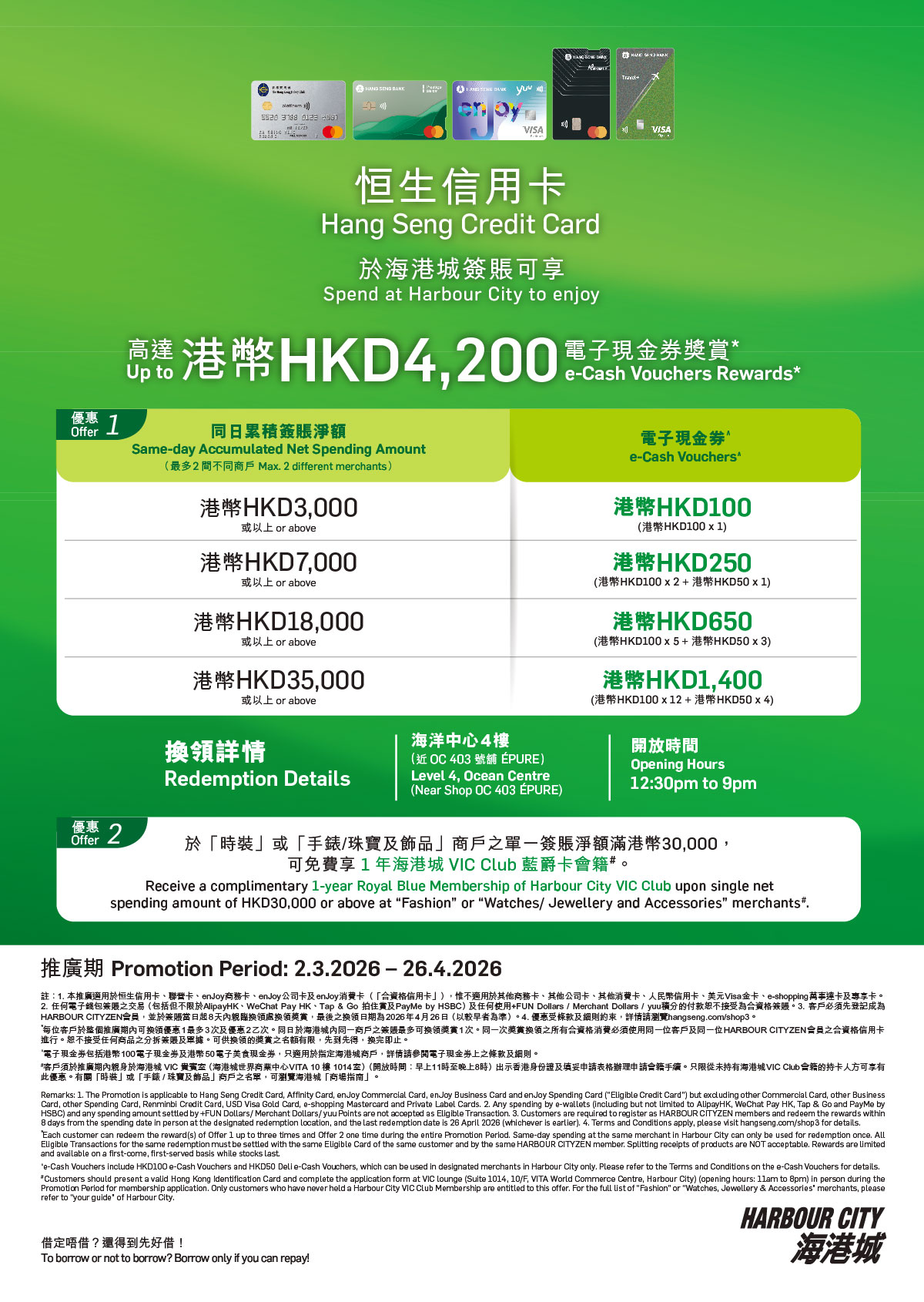 Terms and Conditions of Hang Seng Credit Card Harbour City Spending Rewards