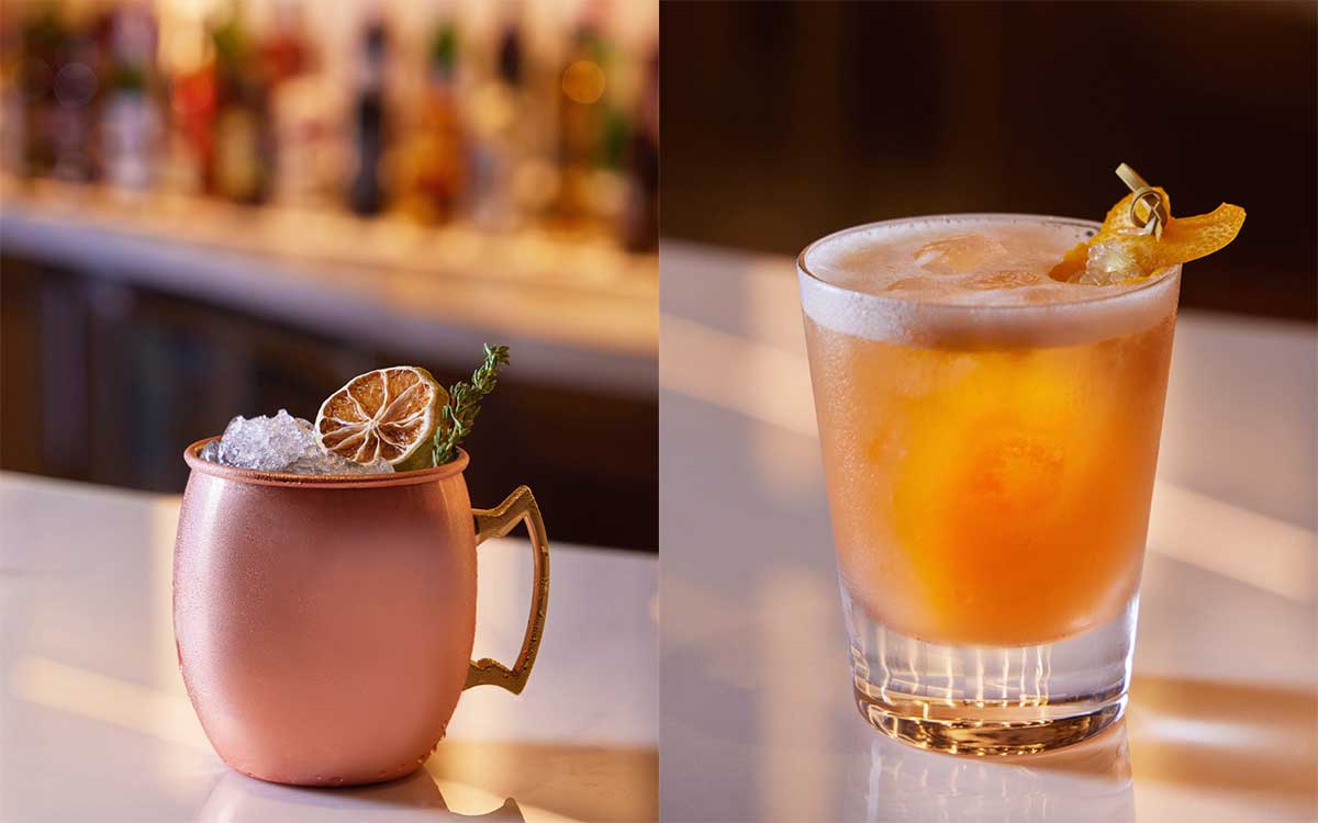 晚上時分,雲石牆上的烈酒與注目的燈飾令酒吧區更為奪目耀眼,為城中愛享受生活的賓客帶來來自法國、意大利和新世界的經典美酒及一系列特色雞尾酒。招牌雞尾酒包括: