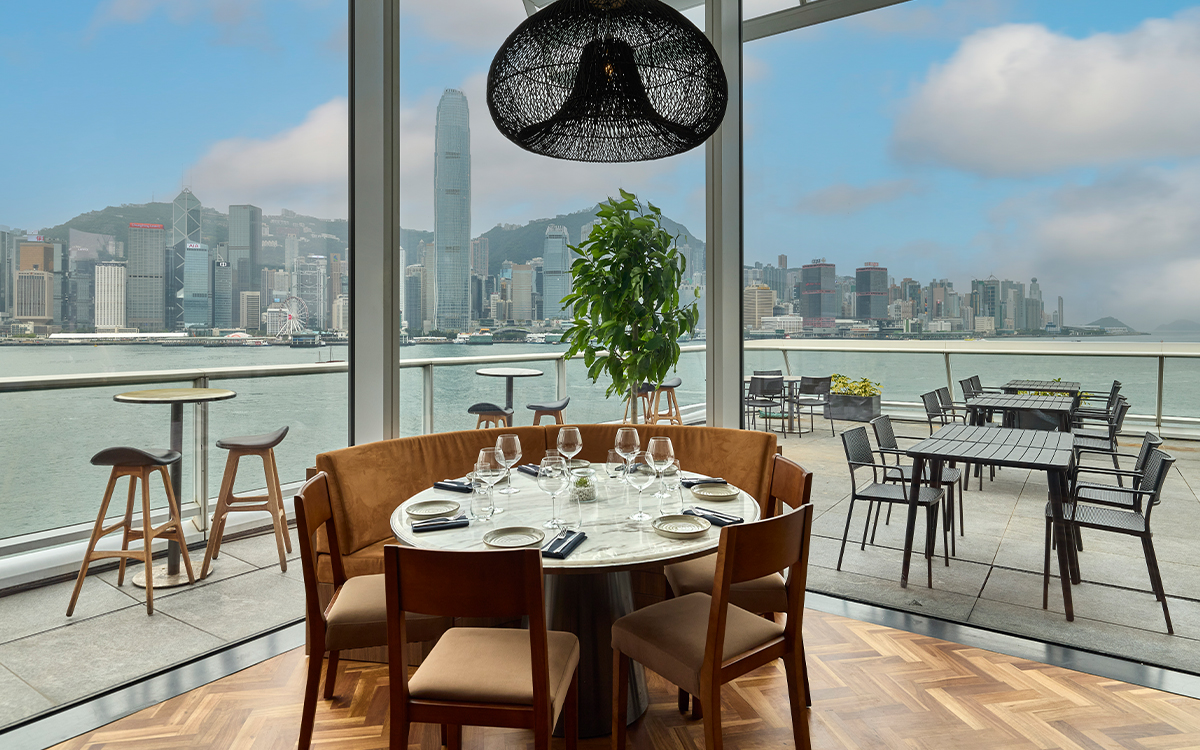 餐廳的寬闊露台可容納80位賓客,坐享香港最令人屏息的日落美景。無論是晚餐的日落雞尾酒時光、悠閒的週末早午餐,迎著海風,細看黃昏入夜後的璀璨夜景,自然過渡,渾然天成。露台開放式佈局配以維港美景,亦是舉辦私人活動的絕佳場所,由親密婚宴至重要慶典,均可為賓客度身訂造,成就難忘的人生重要時刻。