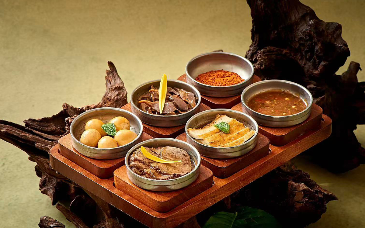 傳統滇味滷味四拼 有牛腱、鴨胗、鵪鶉蛋和蘭花乾,每款均入味非常,靈魂滷汁功不可沒!還有米酒乳扇羹,以雲南特產乳製品「乳扇」和甜米酒煮成的湯羹,奶香與酒香交織,口感順 滑,酸甜開胃。