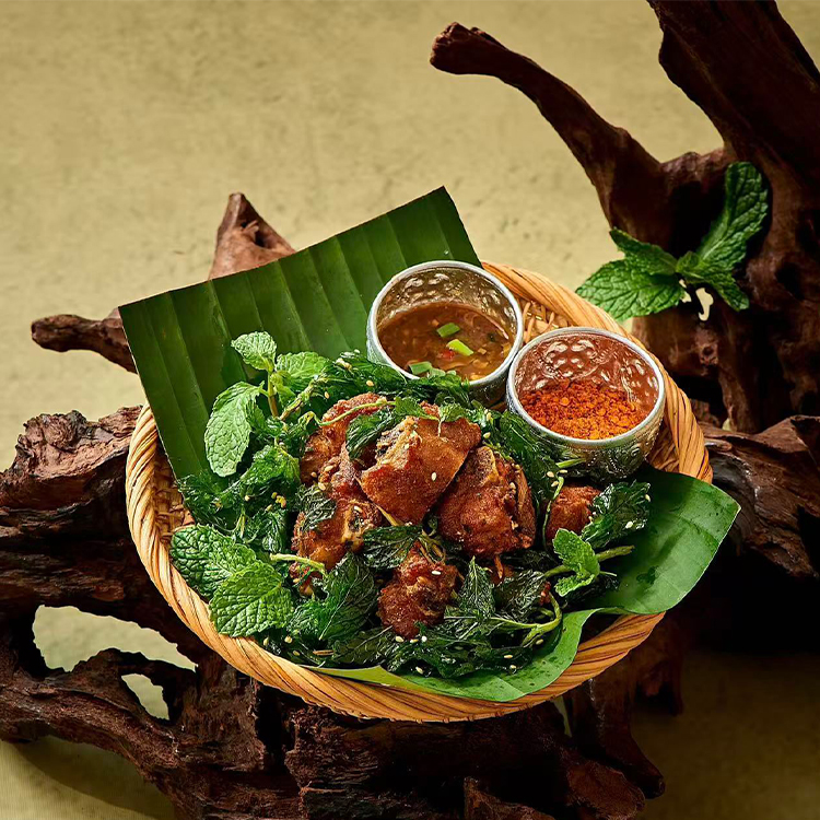雲南過橋米線的儀式感在「銀米」展現得淋漓盡致。湯底沸騰上桌,以 300℃定製石 碗恆溫護航,團隊承諾並主持「三分鐘上湯儀式」,確保每碗湯溫度精準保持在 98℃ 的黃金口感狀態。顧客可親自將豐富食材逐一放入滾燙湯底中,由生到熟依序入湯, 將其瞬間燙熟並鎖住鮮嫩。食客在氤氳熱氣中親手「過橋」,既是風味的締造,亦是文化的沉浸。