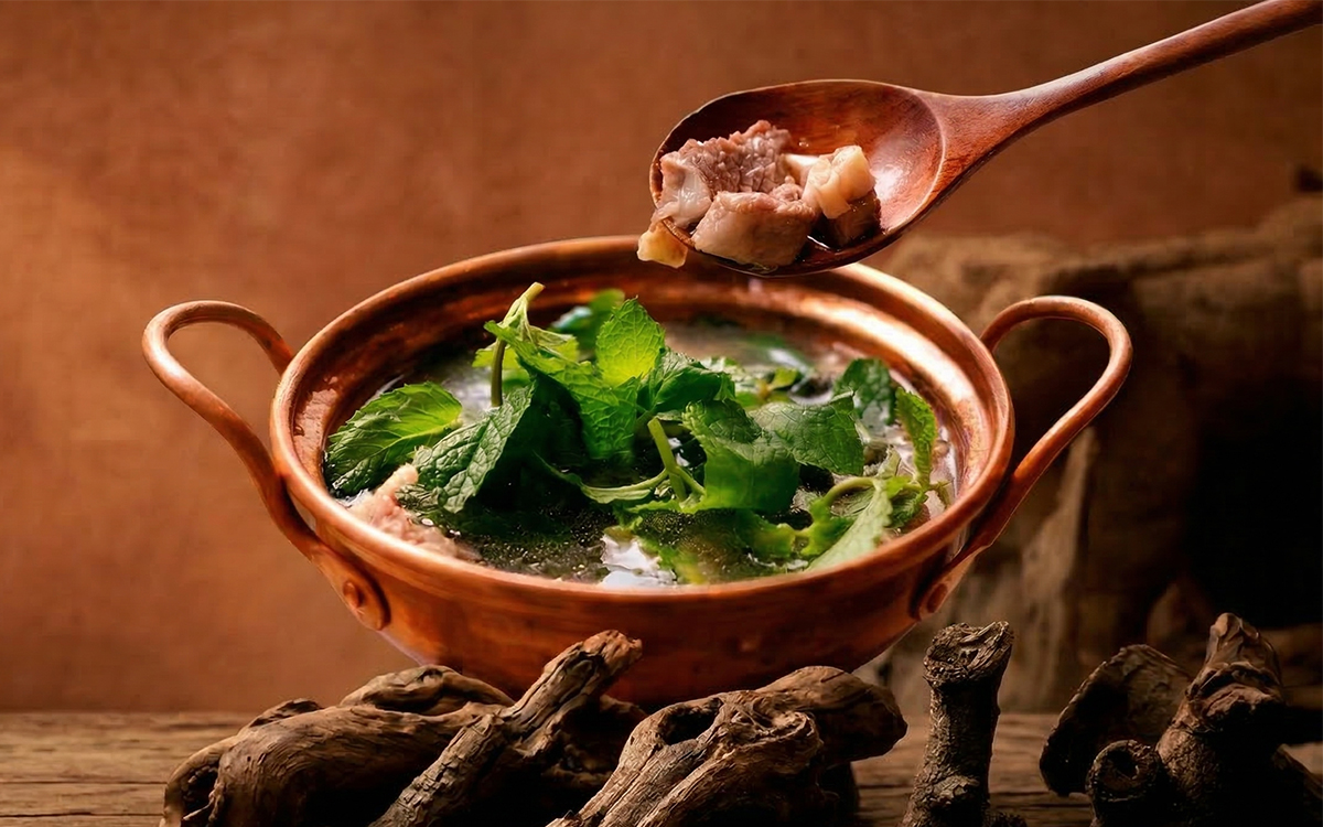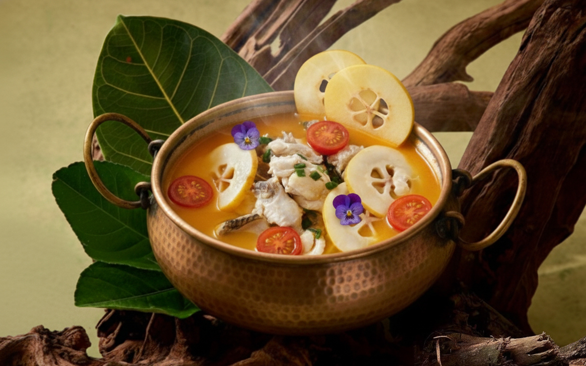 銅鍋炖牛腩,以雲南傳統手工製銅鍋烹調,非常適合慢炖讓牛肉軟腍入味,是一 道融合了清新香料與濃郁牛肉的風味料理。喜歡酸湯魚的一定要試銅鍋野果酸湯魚,用上了雲南獨有香料,加入有萬壽果之稱的雲南特產酸木瓜及樹蕃茄,均具有健 脾胃、助消化等功效,兩者特有的果酸遇上鮮甜嫩滑的魚肉,有種意外的酸鮮。