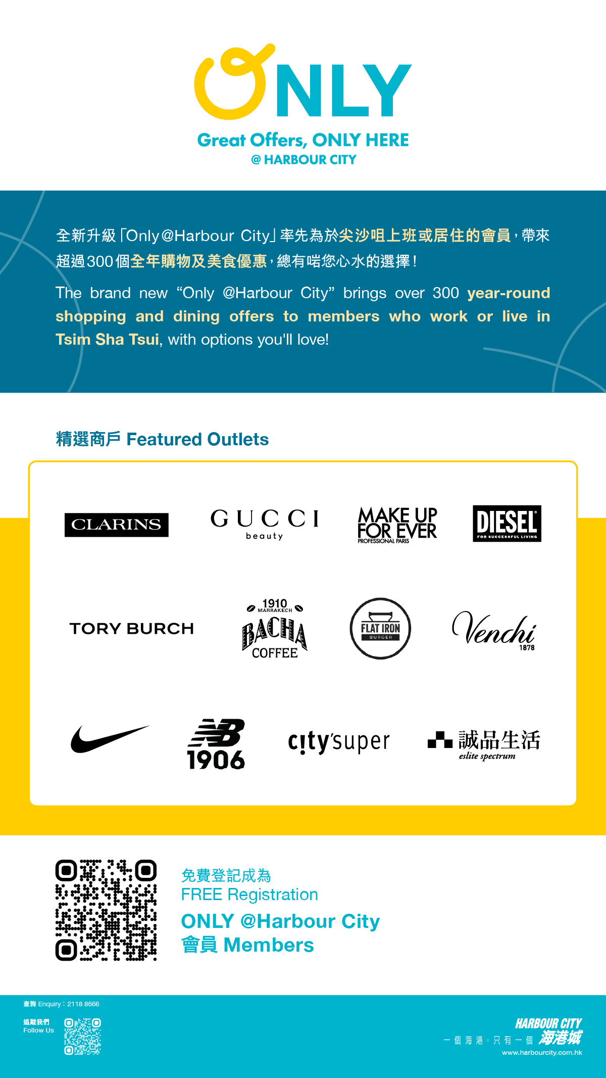 全新升級「ONLY @Harbour City」為於尖沙咀上班或居住的會員送上更多更「筍」的專屬優惠及精彩體驗!